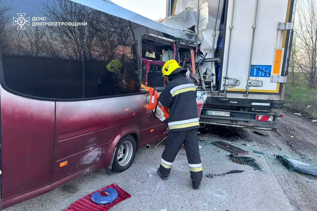 За даними рятувальників, маршрутний транспортний засіб зіткнувся з вантажним автомобілем, який стояв на узбіччі. Удар був сильним: частину людей затиснуло в салоні понівеченого мікроавтобуса.