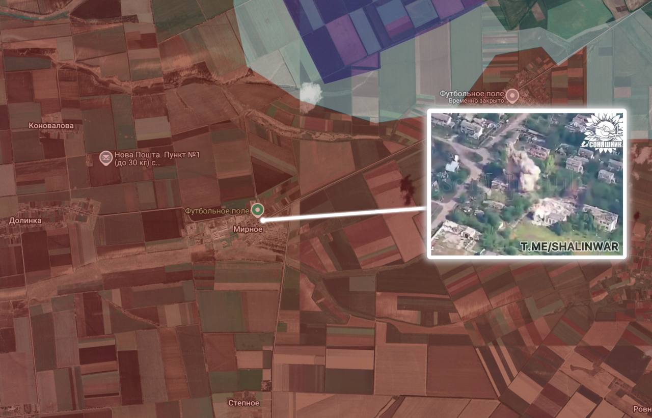 На ще одному відео МІГ-29 французькою високоточною авіабомбою знищує ПУ БПЛА в одному з будинків окупованого с. Мирне, що між Оріховом та Токмаком.