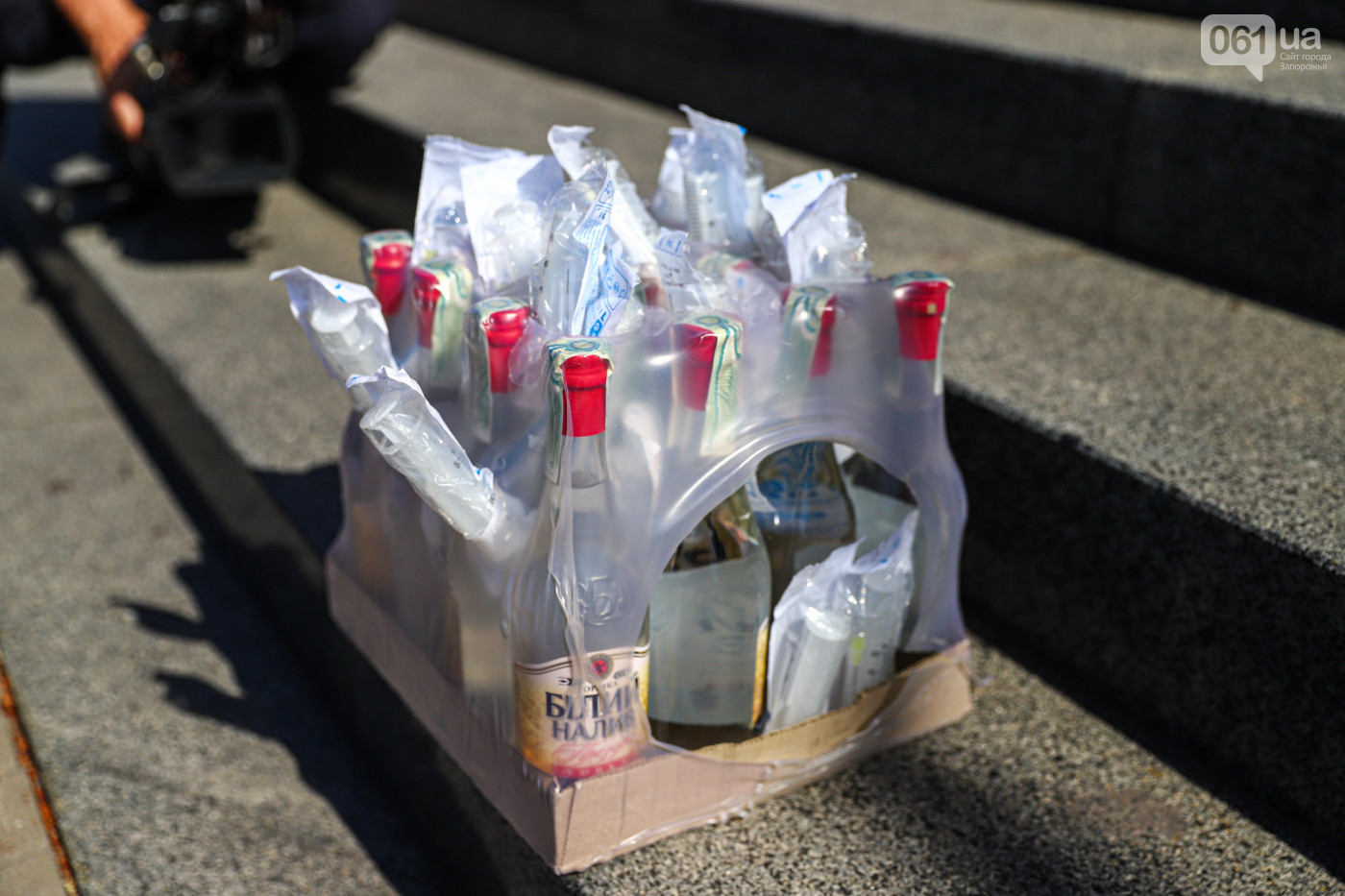 Борцы с наливайками принесли ко входу в мэрию ящик с алкоголем и шприцами, чтобы чиновники точно не смогли “пройти мимо” этой проблемы.
