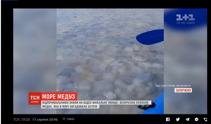 Аномальне явище зацікавило й журналістів “1+1”. 17 серпня вони відвідали Азовське море у пошуках цього “острова”, але віднайти колонію медуз їм не вдалося.