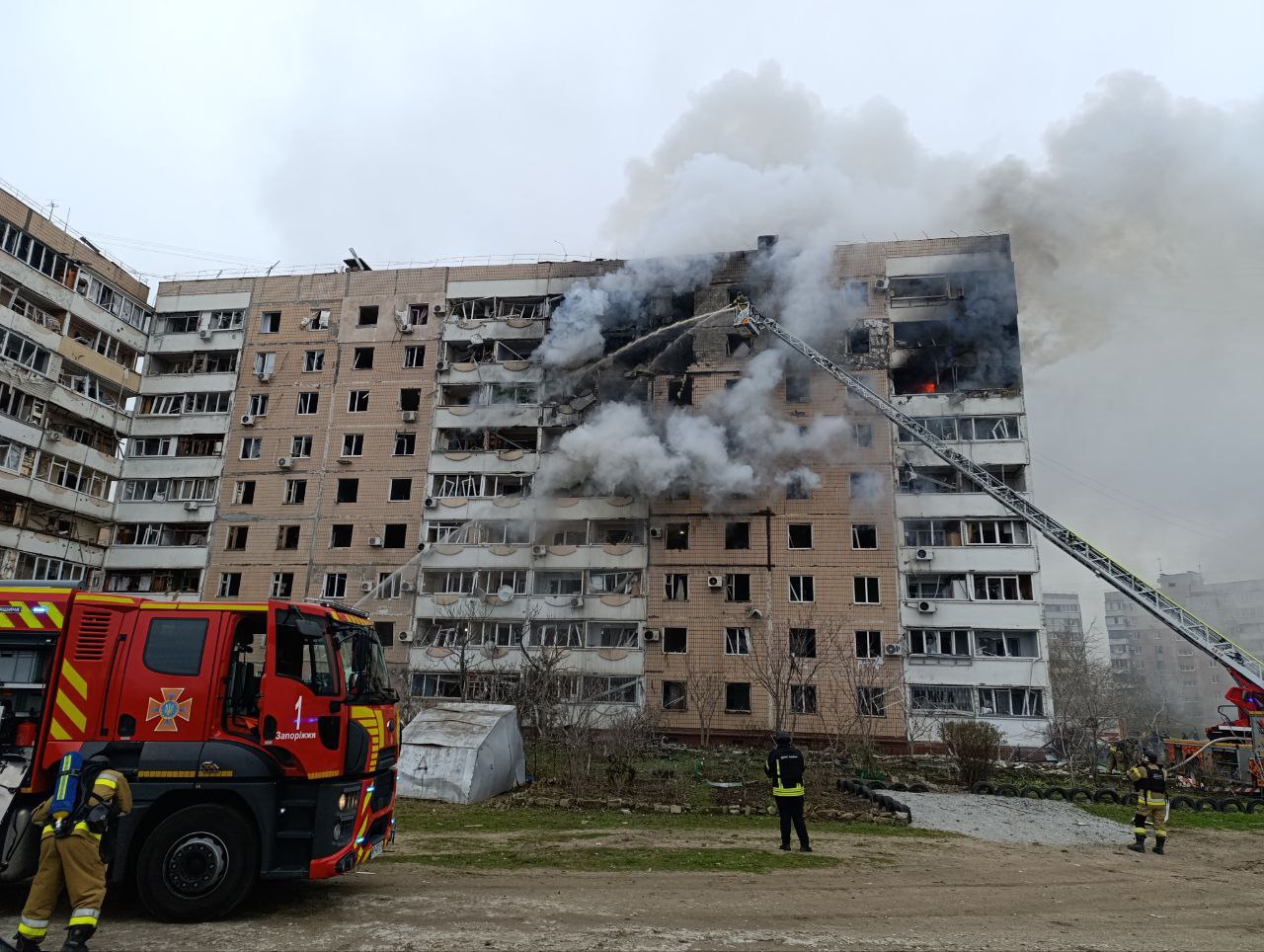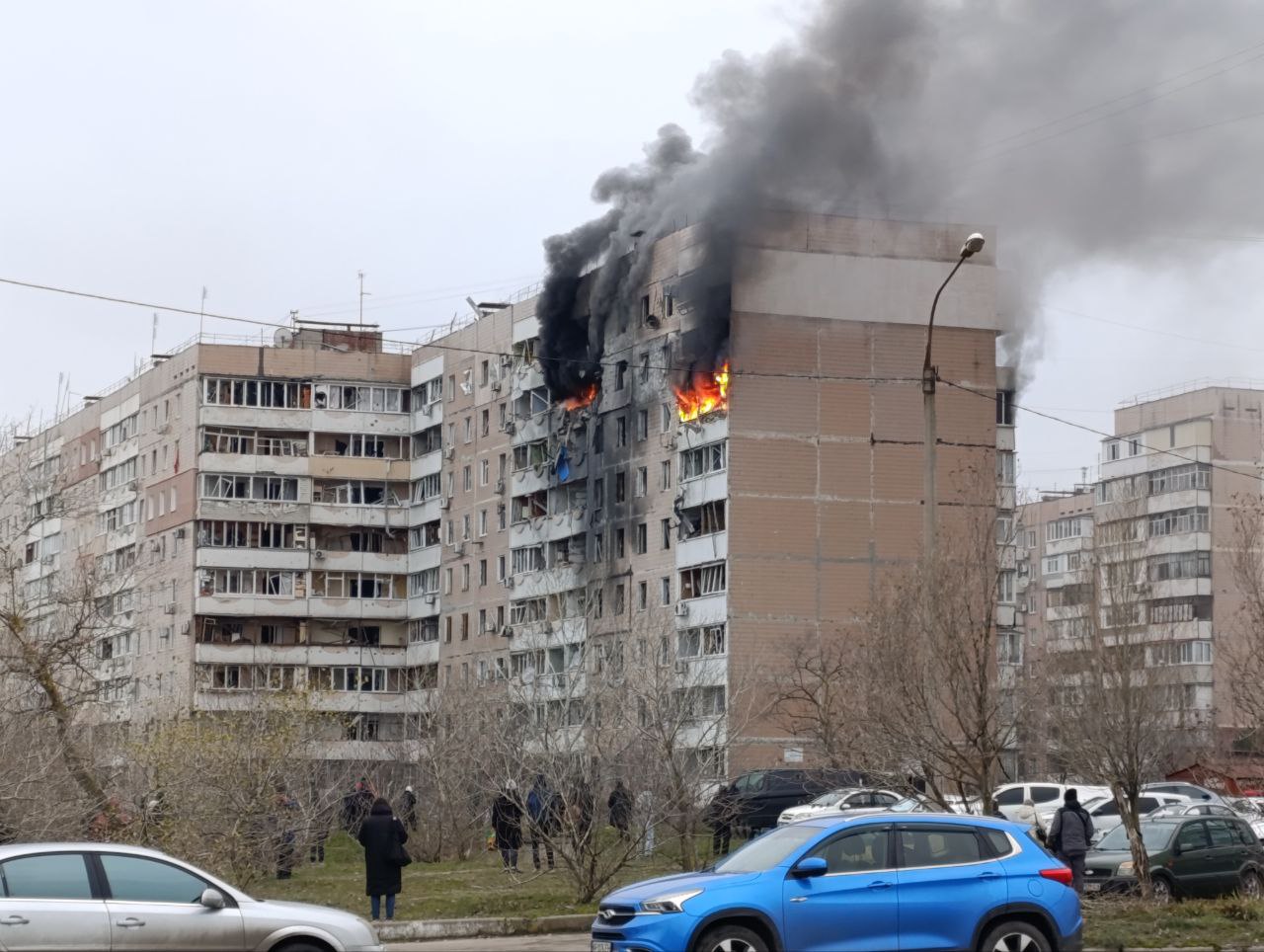 Акцент прибув до Південного мікрорайону Запоріжжя, де близько 12:00 пролунав вибух — снаряд влучив у житловий будинок. На місці видно серйозні руйнування: вибиті вікна, обгорілий фасад та уламки на подвір’ї.