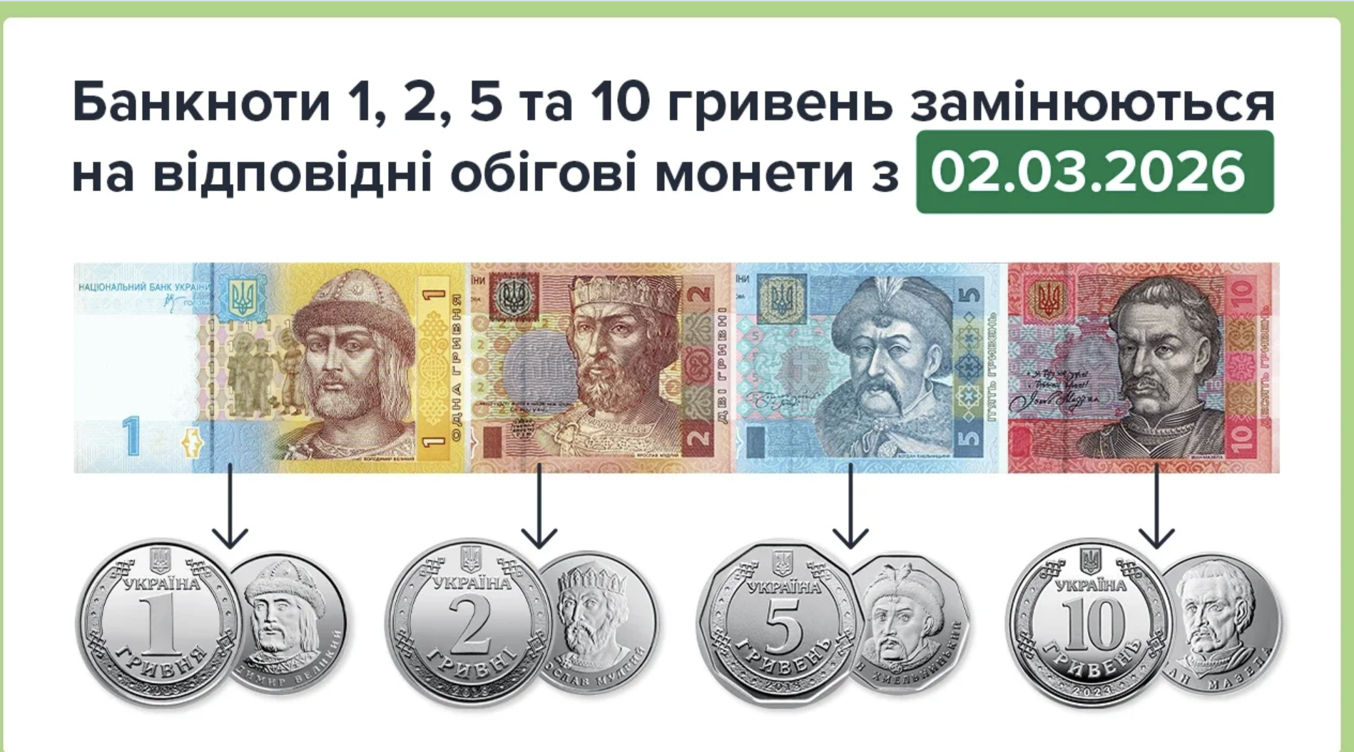 Із 2 березня 2026 року в Україні стартує новий етап оновлення готівкового обігу.