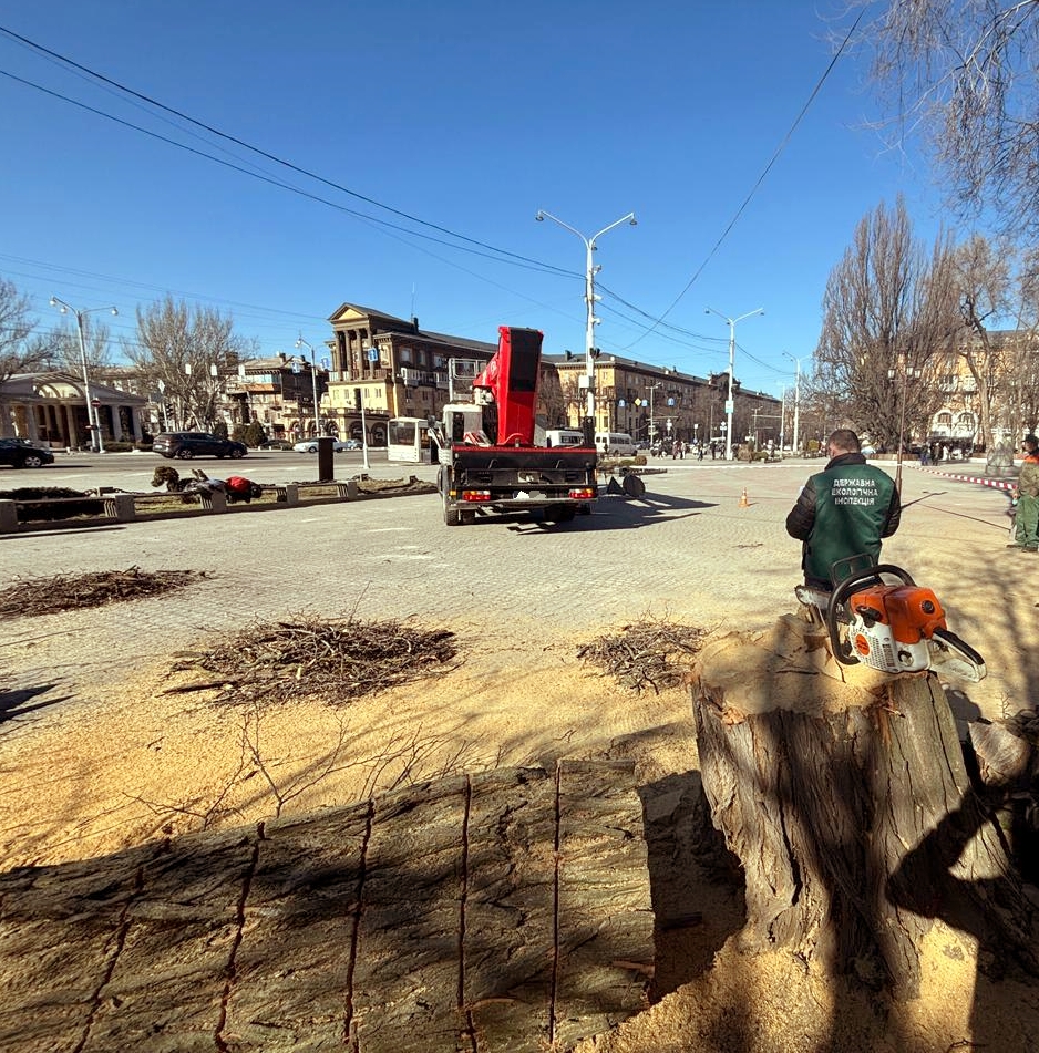 Сьогодні вранці мешканці Запоріжжя помітили, що на Майдані Митців (колишній сквер Маяковського) невідомі спилюють дерева. Інформація швидко поширилася у соціальних мережах і викликала занепокоєння містян, які припустили можливе незаконне видалення зелених насаджень.