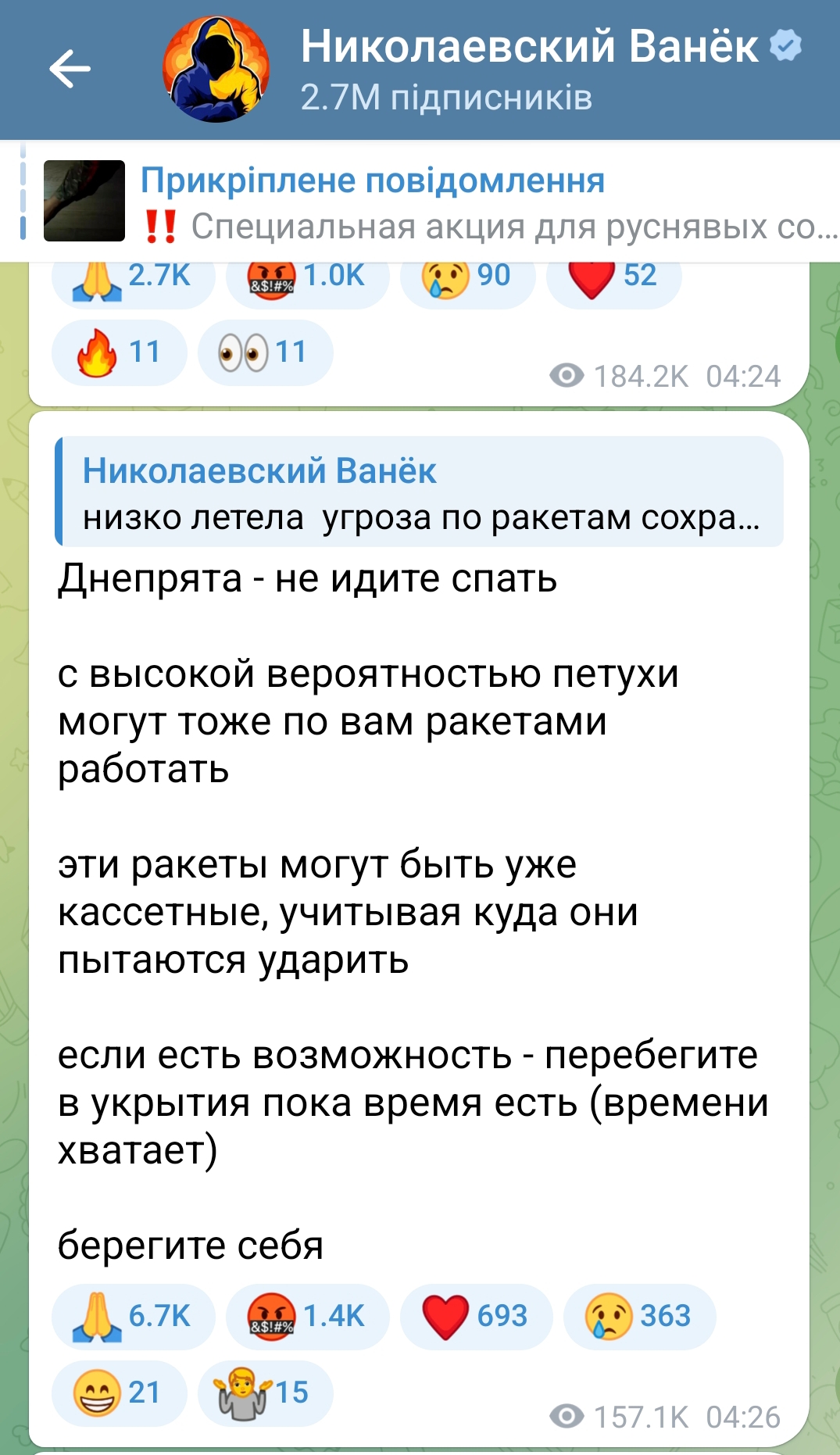 Близько 4:08 мешканці Запоріжжя чули кілька потужних вибухів. За попередньою інформацією на місто були спрямовані балістичні ракети, пущені із району Таганрогу рф. Також балістикою атакований Дніпро.
