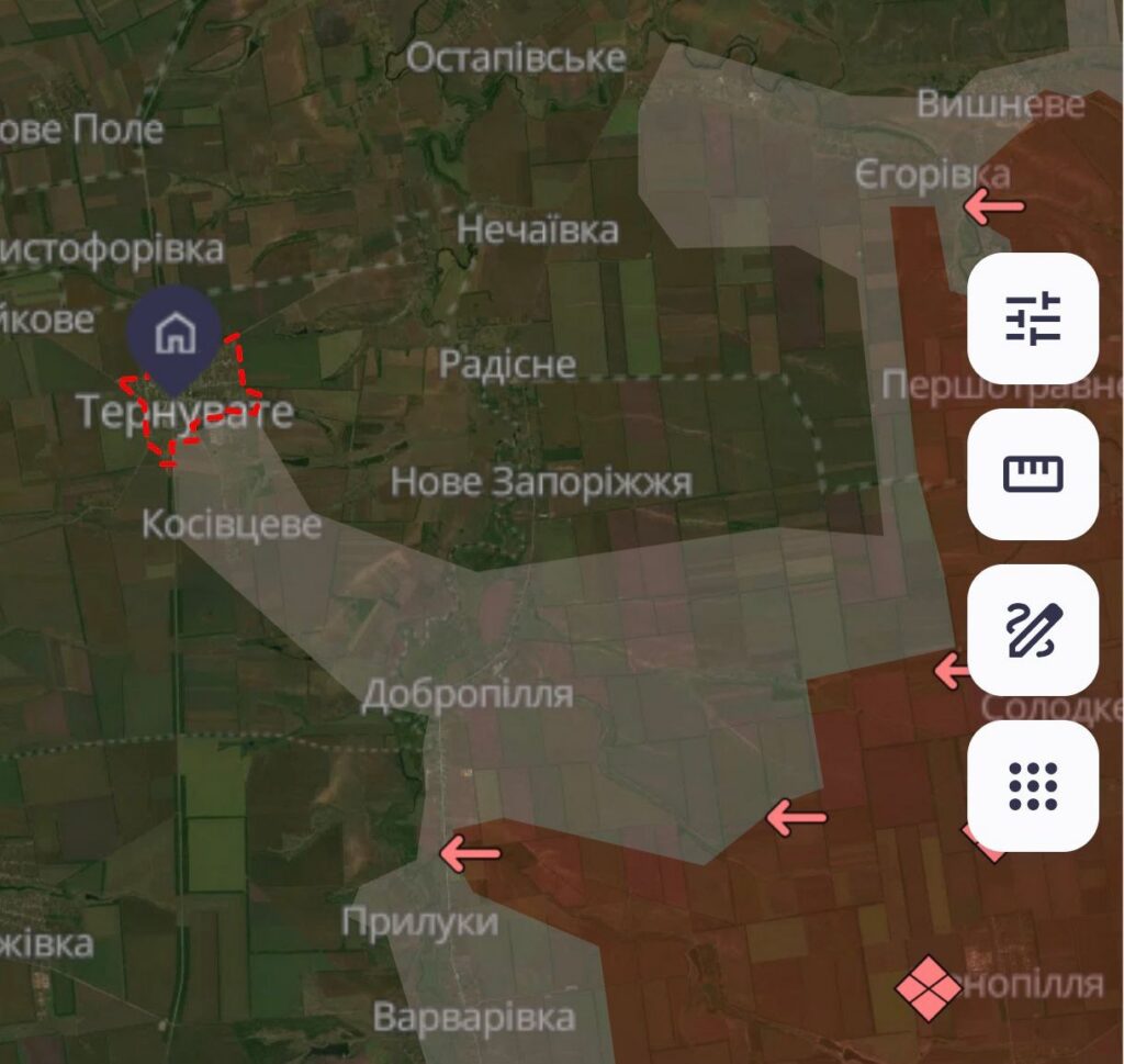 Інформація залишається нечіткою та фрагментованою. За наявними ознаками, Тернувате, навколо якого тривають суперечки між нашими ресурсами, перебуває під вогневим контролем противника. У самому населеному пункті фіксується присутність ворожих осередків. Аналогічна ситуація і в сусідньому Косівцевому. Можливі зміни після підтвердження реального контролю, наразі ж картина розмита — старі кадри часто змішують з поточною обстановкою, що ускладнює об’єктивну оцінку, – повідомляє військовий та блогер Muchnoj Jugend
