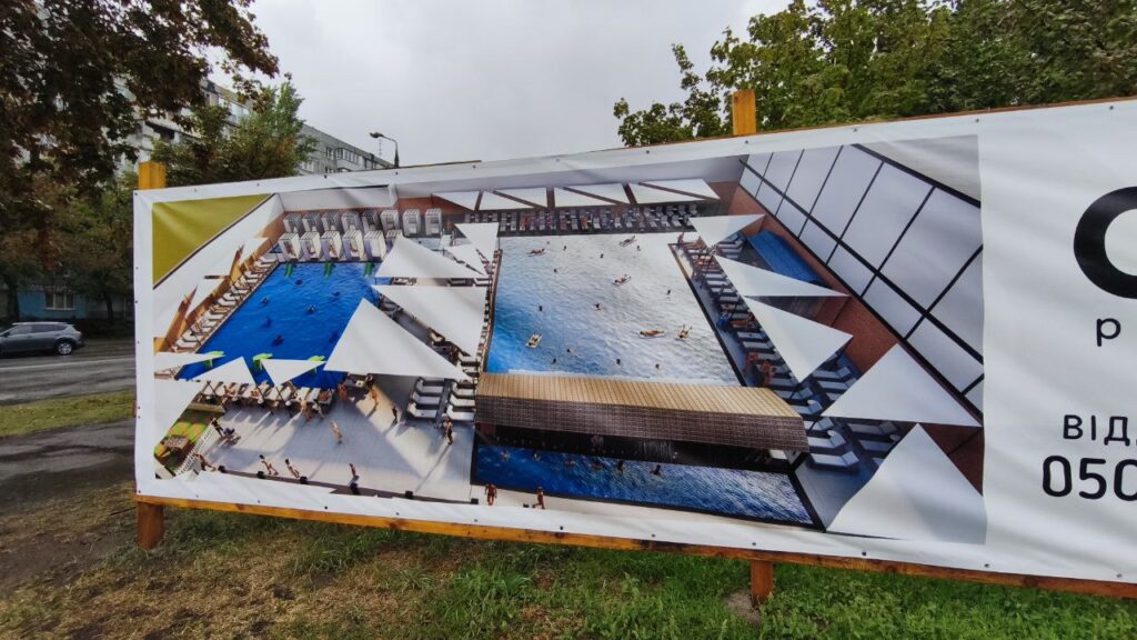 Журналісти «Акцента» побували на місці та зафіксували, що будівництво переходить у нову фазу. На об’єкті вже завершено перекриття комерційних приміщень, де надалі відкриються магазини, кафе та сервіси. Нині бригади займаються монтажем колон, що стануть несучою основою верхніх поверхів, а також підготовкою котлованів під майбутні басейни.