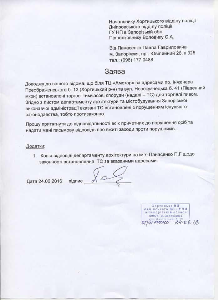 Сегодня, 4 июня, общественным активистом Павлом Панасенко совместно с депутатами городского совета Виталием Рябцевым и Вячеславом Зайцевым была прекращена работа пивного магазинчика, расположенного возле входа в торгвоый комплекс Амстор, что в Хортицком районе Запорожья, по ул. Преображенского, 13. Отметим, в течение последнего месяца возле входов в ТК “Амстор” в разных районах города появились МАФЫ – небольшие пивные магазинчики “Бочка”. При этом, как оказалось размещены они были незаконно, и не имели необходимой разрешающей документации.