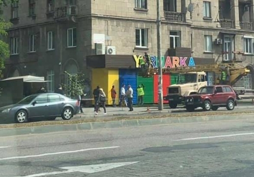 Общественность победила: в Запорожье демонтируют скандальную вывеску (ФОТО)