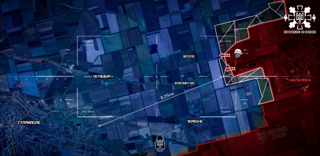 Від крайньої клешні цієї балки до адміністративної межі Гуляйполя лишається ~8,25 км — відстань, яку русаки можуть подолати технікою й піхотою за сприятливих умов, особливо якщо буде масована повітряно-дронова підготовка і удар по логістиці. Саме втримання цієї дистанції–наш буфер, його прорив дасть противнику коридор до основних позицій.