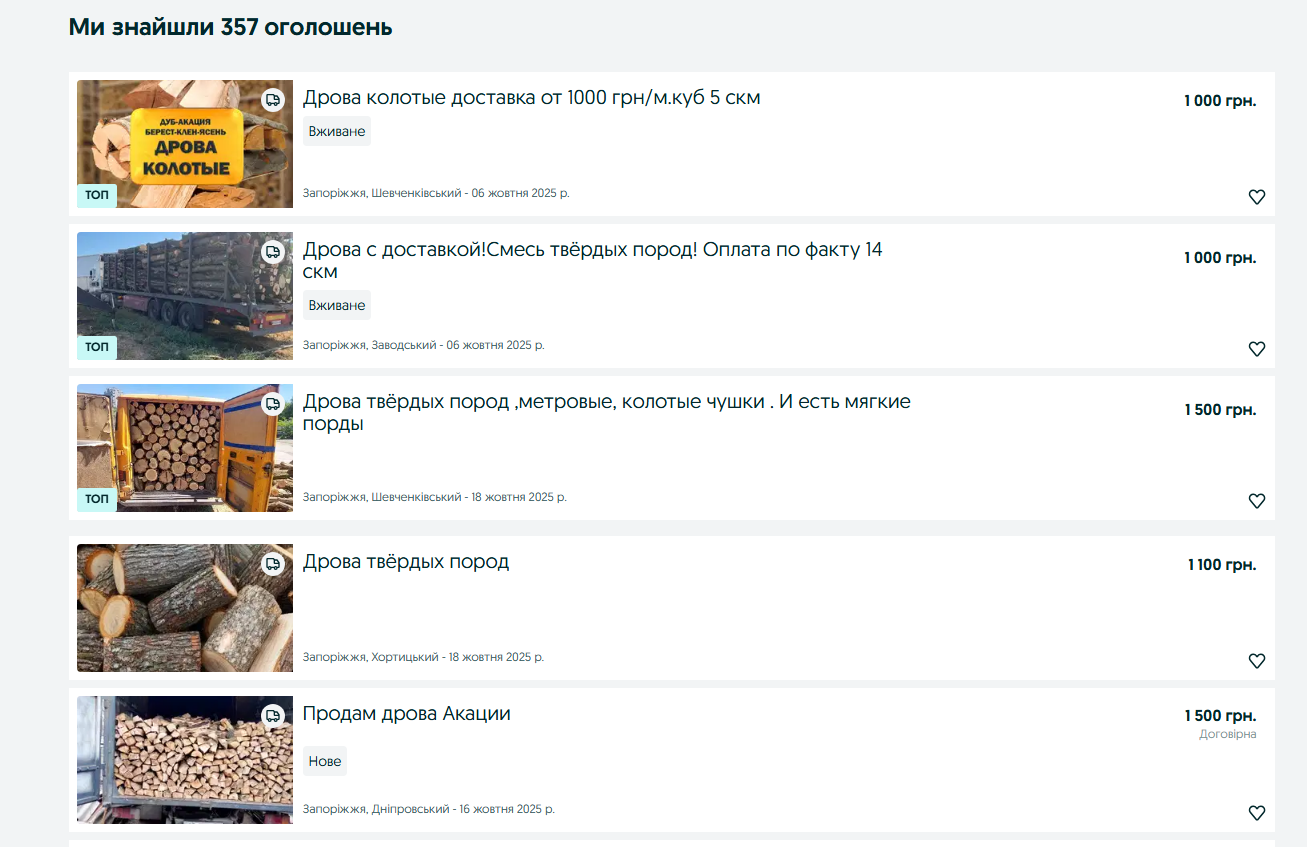Купити Дрова у Запоріжжі – OLX дає ціни нижчі від реальних