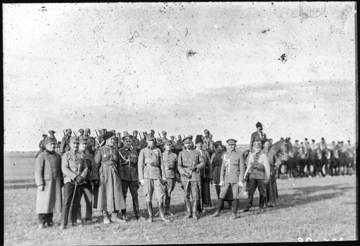 Світлину датовано 22 травня 1918 року. Її зроблено під час урочистої зустрічі добровольців Українських січових стрільців і бійців Запорозької дивізії на березі Дніпра в селі Царицинський Кут (нині Приморське Запорізької області). Подія стала символом об’єднання українських військових після звільнення регіону від більшовицьких сил та завершення кримського походу запорозьких частин.