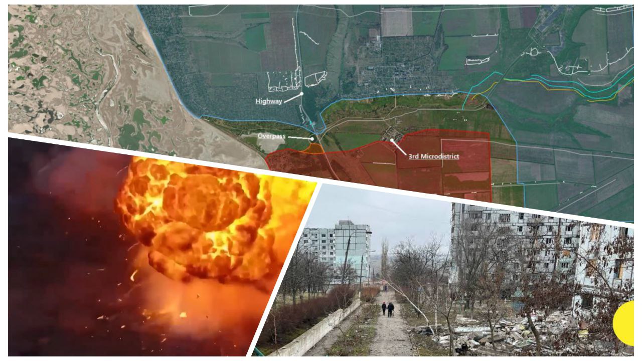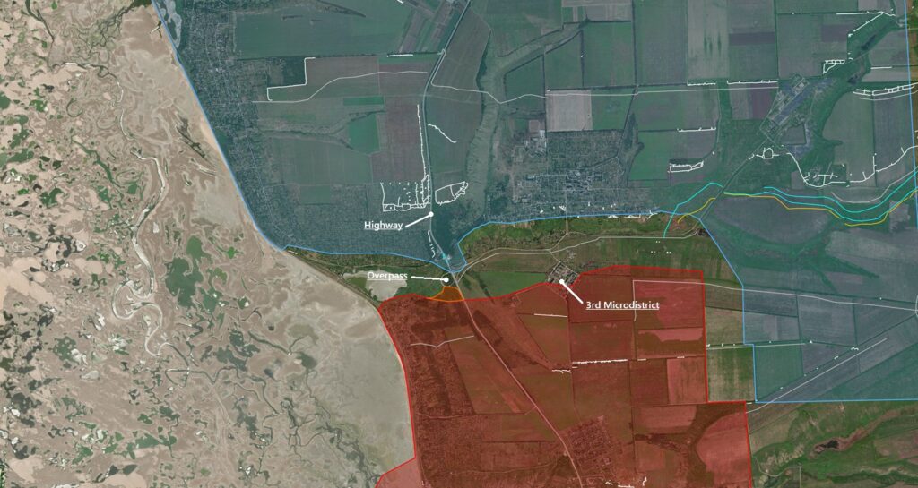 3-й мікрорайон був очищений двічі протягом останнього тижня, і деякі тіла росіян лежать там вже 2 місяці. Оскільки його зазвичай використовують для спроб накопичення, українці часто називають його «складом мертвого м’яса». Найскладнішим моментом цього тижня була спроба росіян пройти висохлим руслом Дніпра: з болотистій місцевості близько 5-10 росіян проповзли до перших приморських будинків Приморського. Деяких витіснила українська піхота, деякі залишилися застряглими в підготовлених мінних полях та перешкодах у болотах.