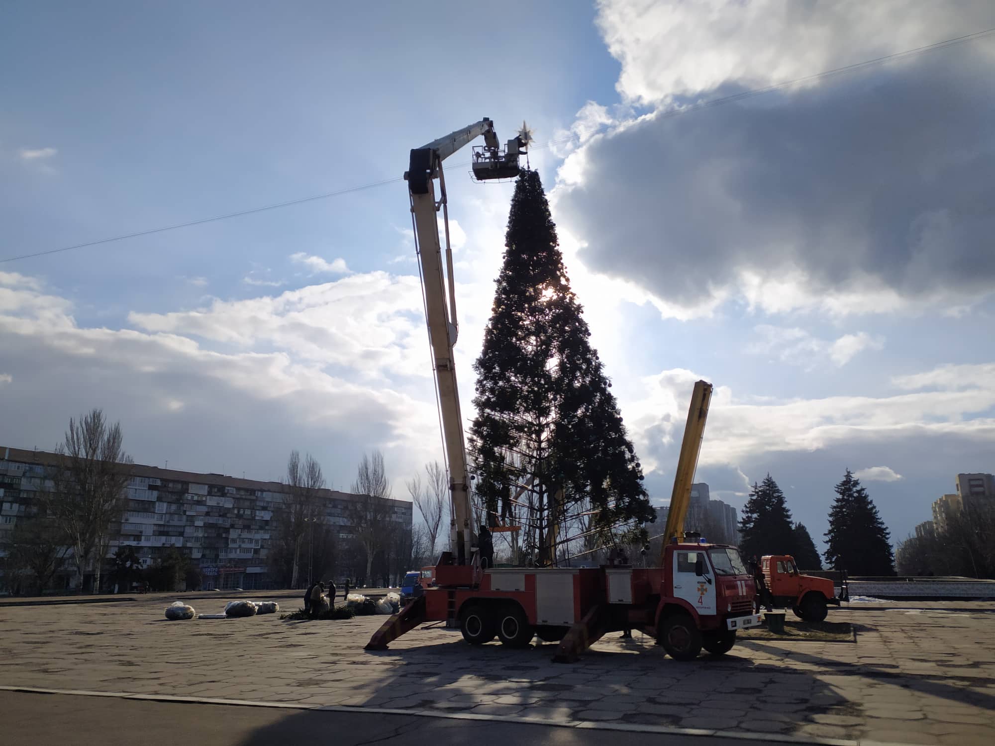 Отгуляли: в Запорожье разбирают главную городскую ёлку (ФОТО, ВИДЕО)