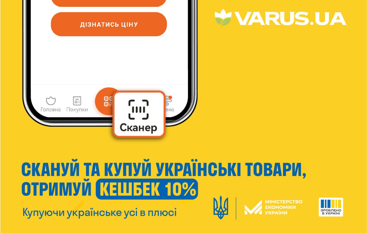 Відтепер купувати товари, які беруть участь у програмі «Національний кешбек» стане ще простіше. Для зручності клієнтів мережа VARUS пропонує скористатися мобільним застосунком, де є функція «Сканер». Завдяки їй клієнти можуть легко перевірити участь товарів у програмі кешбеку та відразу дізнатися про можливу суму винагороди.