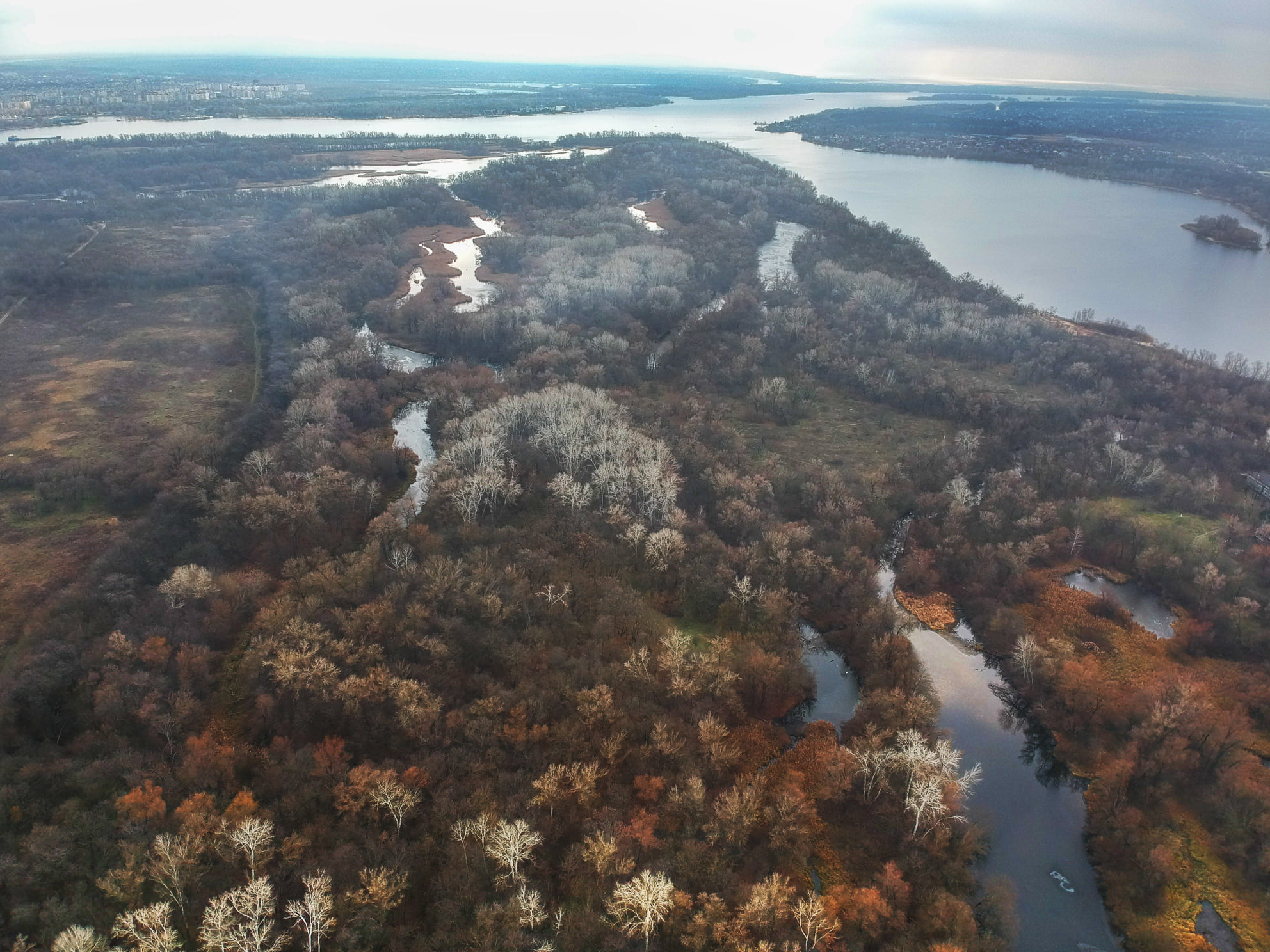 Озёра Хортицы сковал лёд: вид с высоты (ФОТО)