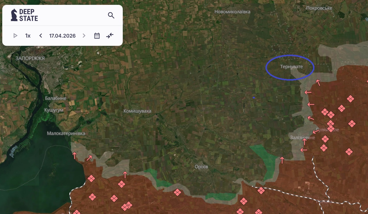 На Гуляйпільському напрямку ситуація в районі Тернуватого стрімко погіршується. Північний під’їзд фактично паралізований — ворог щільно контролює його FPV-дронами і знищує техніку ще на підходах. Одночасно росіяни б’ють по українських дронових позиціях, намагаючись “осліпити” фронт перед подальшими діями.