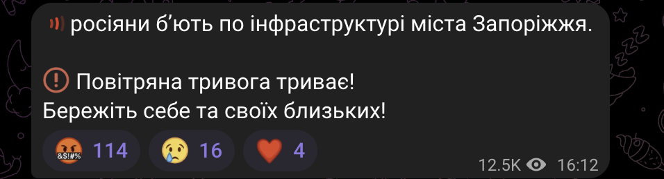 росіяни завдали щонайменше 5 ударів по Запоріжжю.