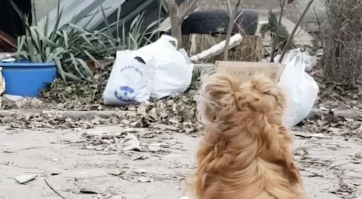 На відео зафіксували, що пес дуже нервує, ніби шукає господаря.