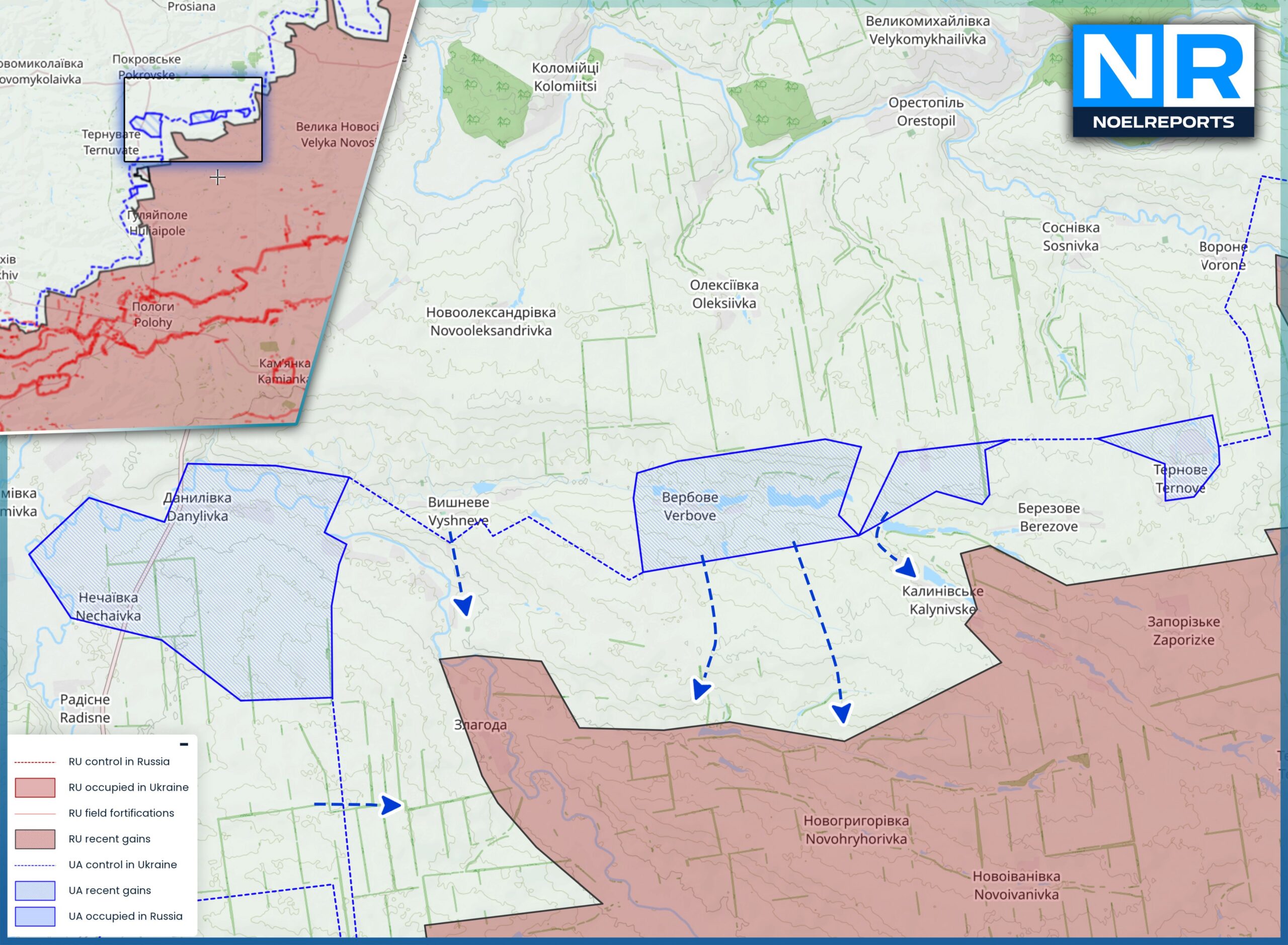 Українські сили з початку лютого ведуть тактичний наступ на північному фасі Гуляйпільського фронту — на стику Запорізької та Дніпропетровської областей. За супутниковими знімками Sentinel-2, ключові бої зосереджені навколо панівних висот, контроль над якими відкриває шлях до Успенівки та Темирівки.