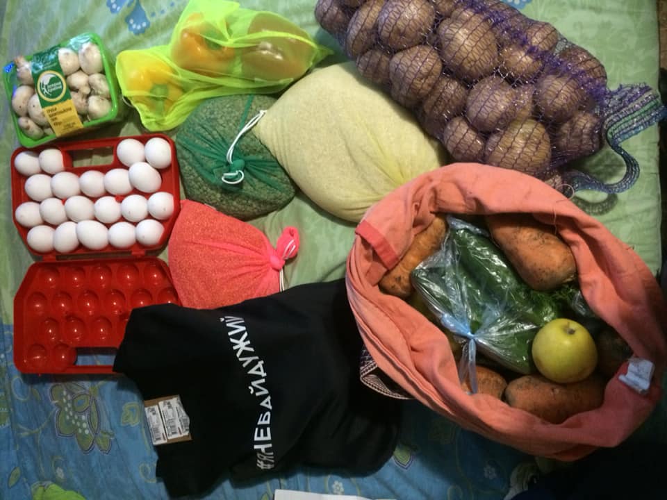 Среди покупок на фото можно заметить грибы в пластиковом контейнере, однако, по словам Кулык, ей пришлось купить их так, ведь у нее просто не хватило мешочков.