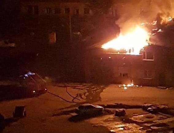 Как сообщают очевидцы, горели склады магазина “Еврострой”. Были слышны взрывы, но это могли быть звуки горящего шифера.