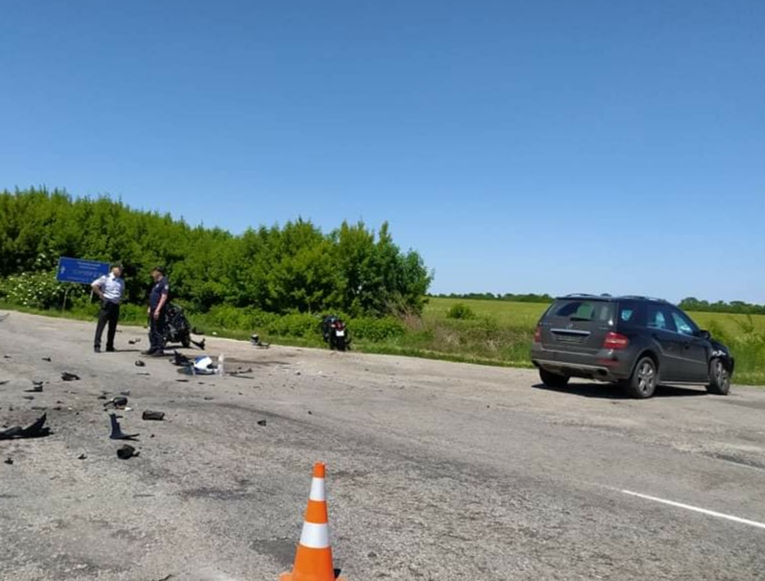 Сегодня, 7 июня на трассе Харьков-Симферополь произошло ДТП с участием Мерседеса и сразу двух мотоциклов.