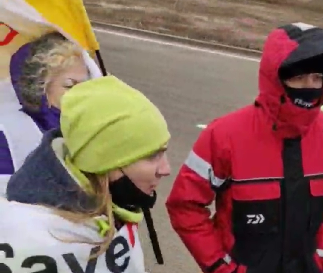 Запорожские участники движения Save ФОП хотели пешком пройтись по новому мосту через Днепр, но им преградили путь сотрудники полиции.
