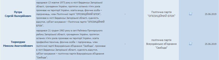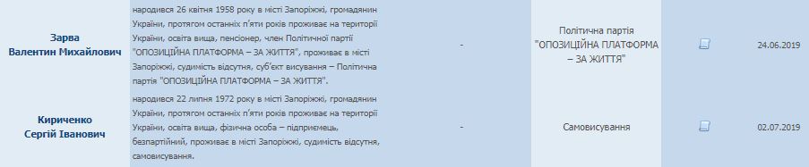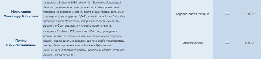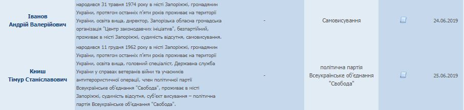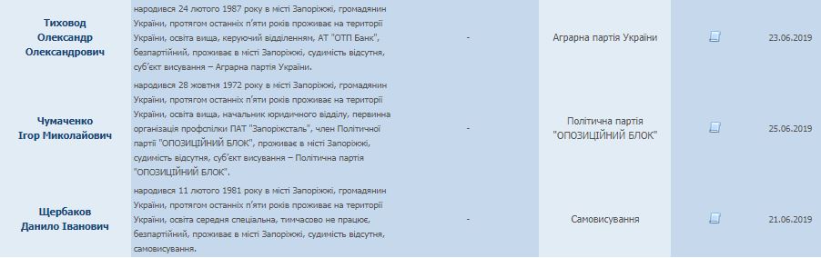 Полный список кандидатов-мажоритарщиков от Запорожской области и информация о них