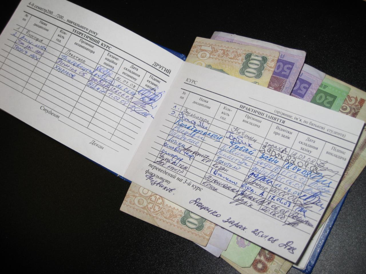 Эти средства по указанию Гудзя студент положил в книгу, лежащую на полке шкафа в служебном кабинете и получил зачетку с отметками о сдаче зачетов и курсовых работ.