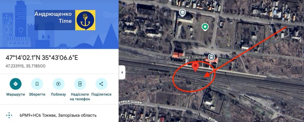 Згідно з картою, опублікованою Андрющенко, удар було нанесено по ст. Великий Токмак.