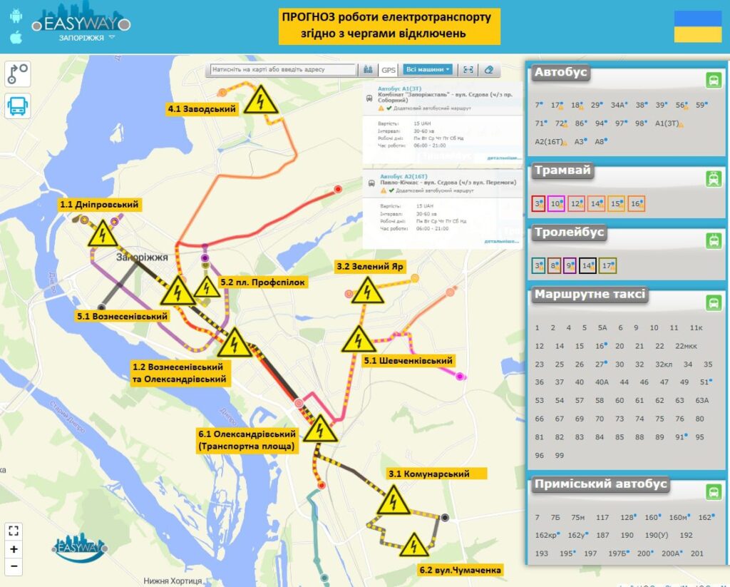 Маршрути №3, 8, 9, 14 та 25 проходять через зони дії кількох черг відключень одночасно (1.1, 1.2, 3.1, 5.1, 5.2, 6.1, 6.2). Через це можливі незаплановані зупинки руху. Окремі рейси виконуватимуться тролейбусами з автономним ходом.