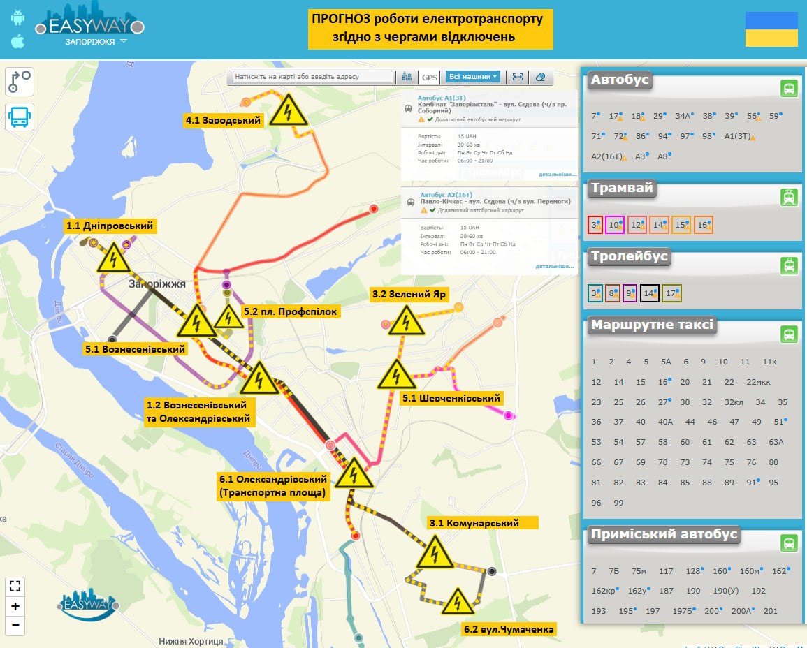 Робота комунального електротранспорту в Запоріжжі 7 січня залежатиме від стабілізаційних відключень електроенергії.