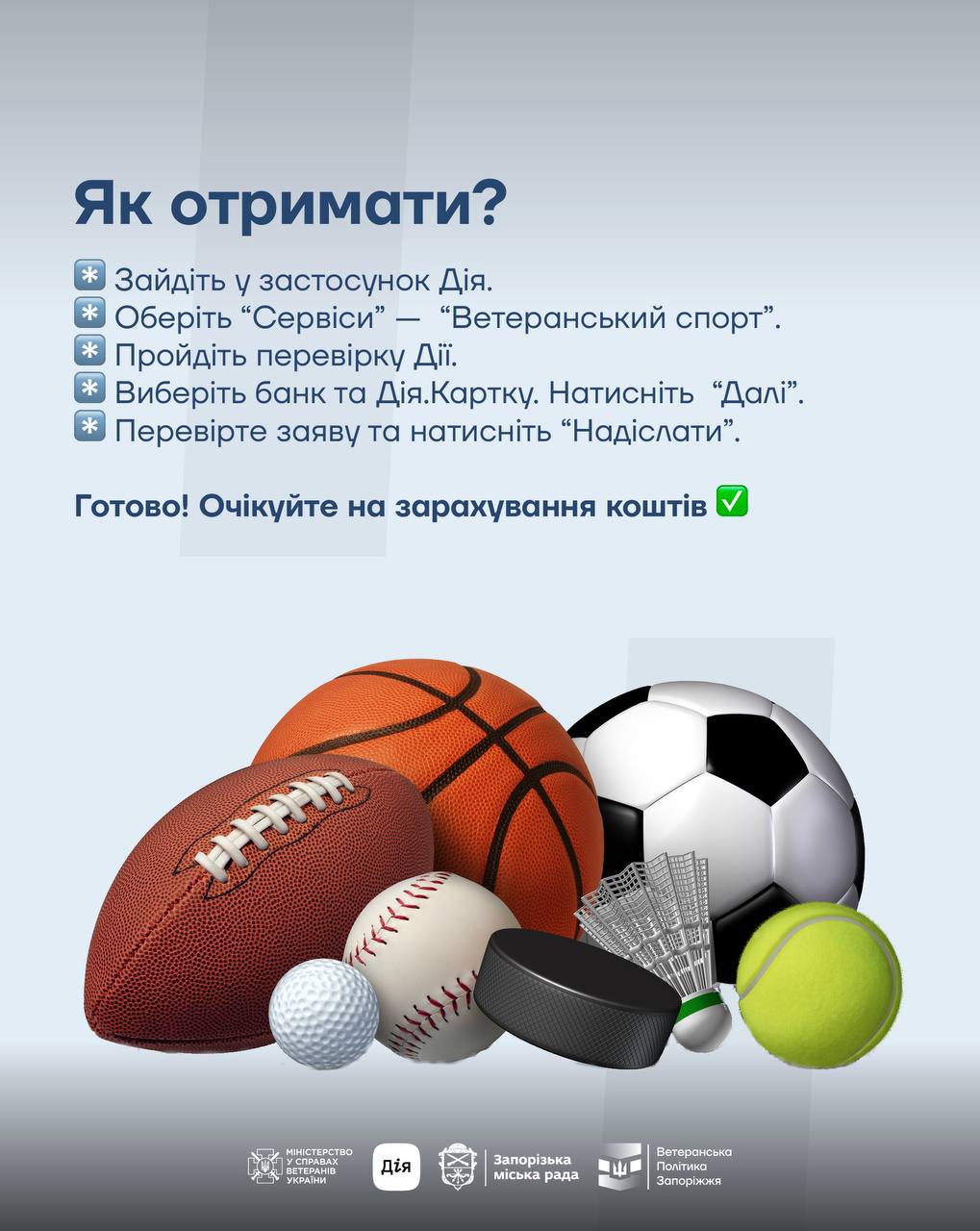 Кошти програми “Ветеранський спорт” можна використати в будь-якому спортивному закладі, що офіційно працює за кодами 7941 та 7997. У Запоріжжі це, зокрема, фітнес-клуби “Best Gym”, “Fit Haus”, “Максимус”, спортклуби “Будівельник”, “Мотор Січ” та спортивно-туристичний комплекс “Хорт”.