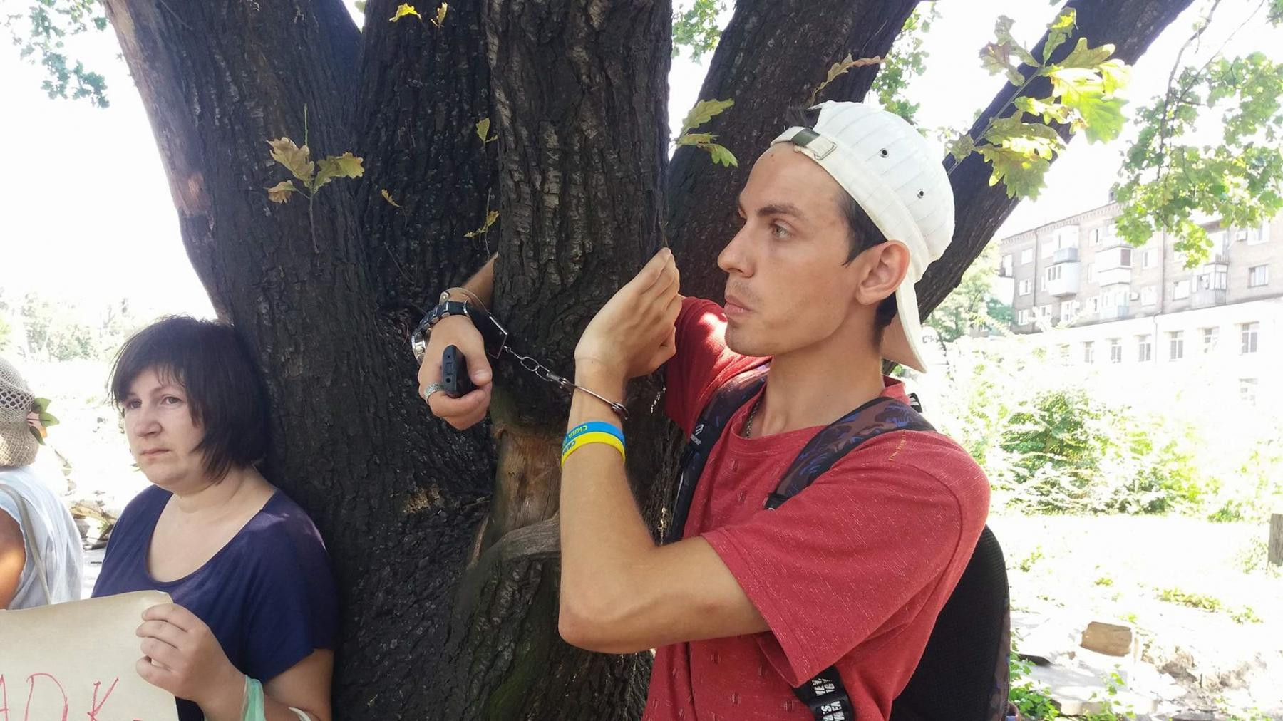 Промахнулся: дуб, к которому приковал себя наручниками запорожский активист, не собирались рубить (ФОТО)