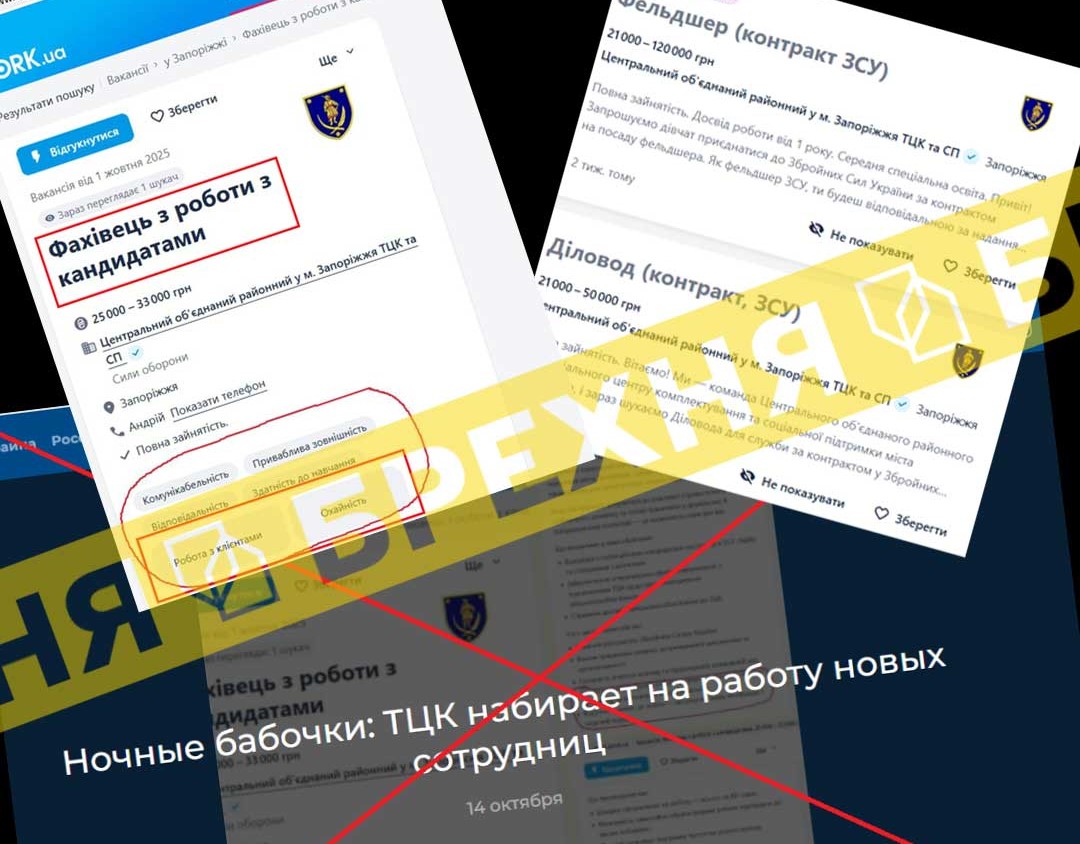 Деякі канали в соцмережах почали поширювати інформацію про те, Запорізький ТЦК шукає жінок з “модельним досвідом”. Для цього навіть були зроблені фейкові сріншоти з начебто сайту Work.ua.