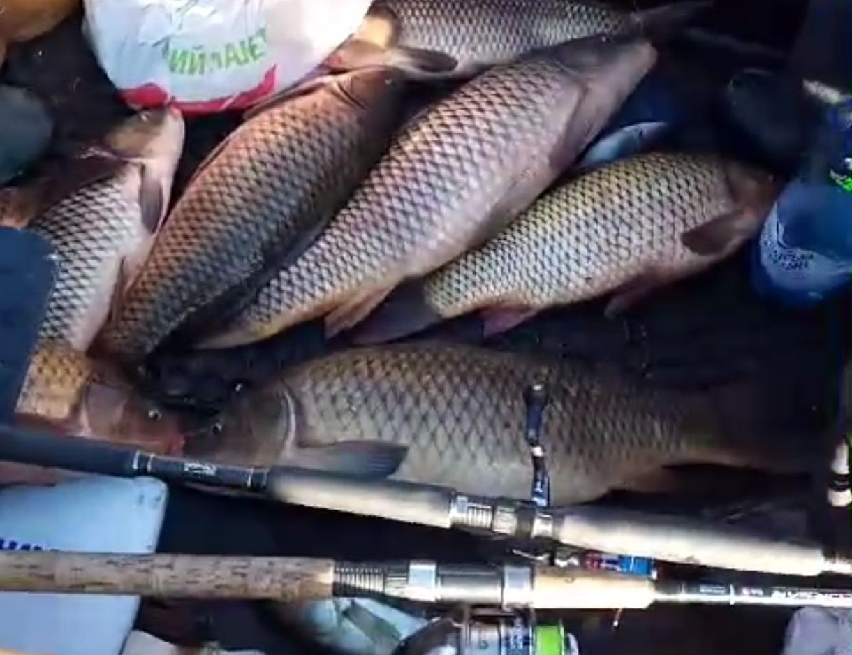 На відео можна побачити, що кілька коропів (сазанів) є досить велимими – деякі з них важать більше 3 кг.