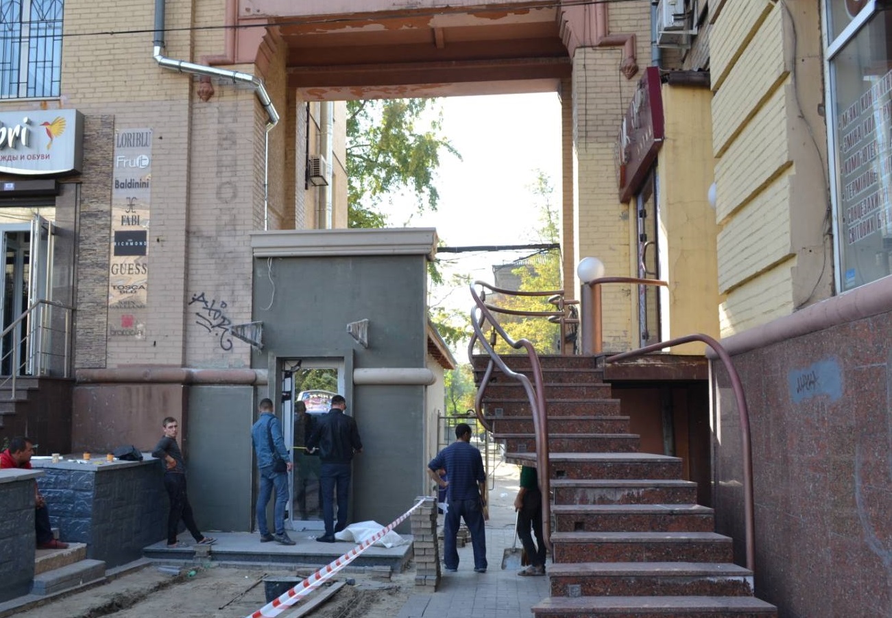 Бурное обсуждение среди запорожцев вызвали работы по ремонту фасада входа в кафе, расположенное в доме по пр. Соборный, 153.