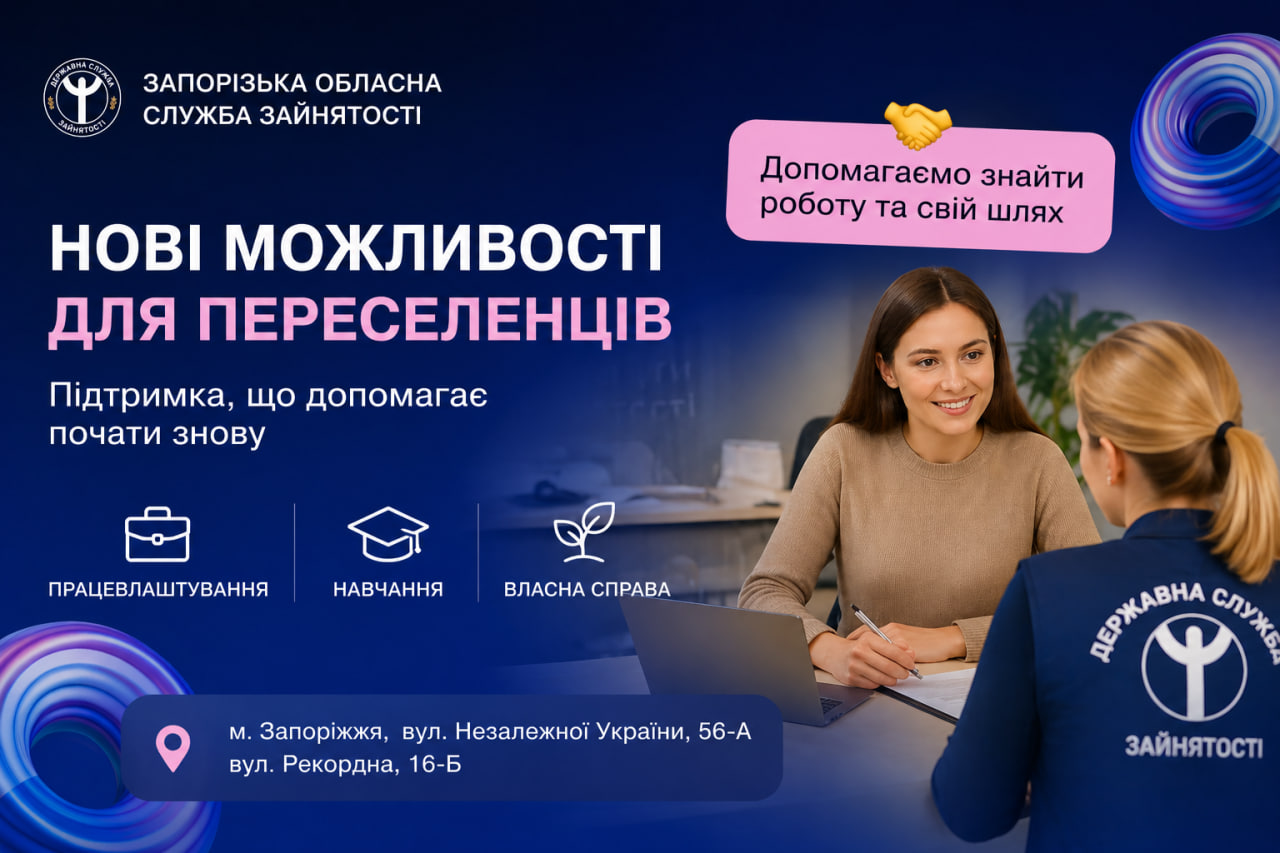 З початку року послугами Запорізької служби зайнятості вже скористалися 3550 переселенців. Кожен із них отримав індивідуальний супровід, консультації та допомогу у визначенні подальшого професійного шляху.