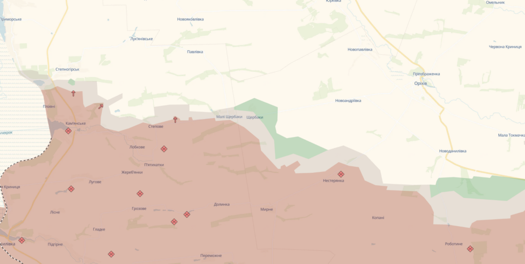 - Західна частина (Оріхівський напрямок): ворог атакував у районах Степного, Приморського, Новоандріївки та Степногірська, однак усі спроби були відбиті. Українські сили втримали контроль над ключовими позиціями поблизу Оріхова.