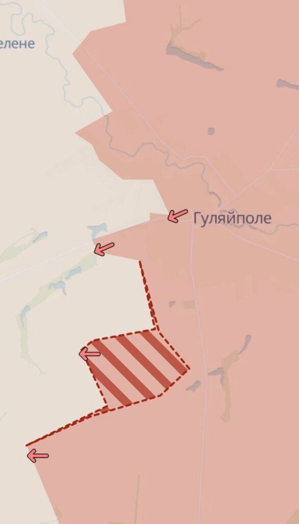 Окрім південного тиску, ворог намагається обійти Гуляйполе ще й із півночі. Штурмові дії тривають у районах Зеленого та Добропілля. Російська армія прагне вийти до рубежу річки Гайчур і водночас витіснити українських оборонців із міста, щоб не залишати його у себе в тилу.