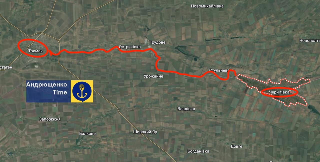 Варто зазначити, що траса з Чернівки на Токмак буде практично рокадною для росіян, тобто розташована вздовж лінії фронту, що є важливим аспектом для створення ефективної логістики. До того ж більша її частина поки не перебуває в зоні регулярної досяжності українських FPV-дронів, на відміну від іншої рокадної дороги Токмак – Василівка. Там, нагадаємо, підрозділ “Роніни” регулярно уражає російську техніку FPV-камікадзе.