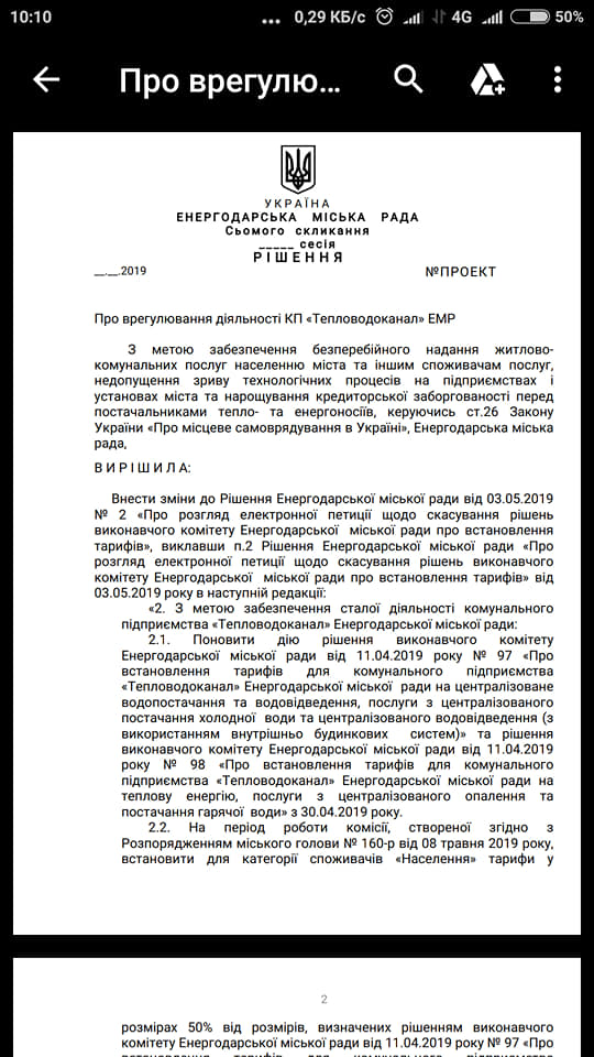 Музыка побоялся пойти против горожан и не подписать решение об отмене тарифов, но теперь он предлагает сделать финт ушами – возобновить тариф, предложенный руководством Тепловодоканала, но типа с компромиссом – установить на время 50%скидку и компенсаций из бюджета!!!