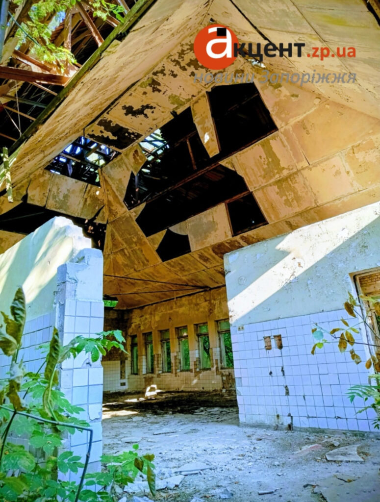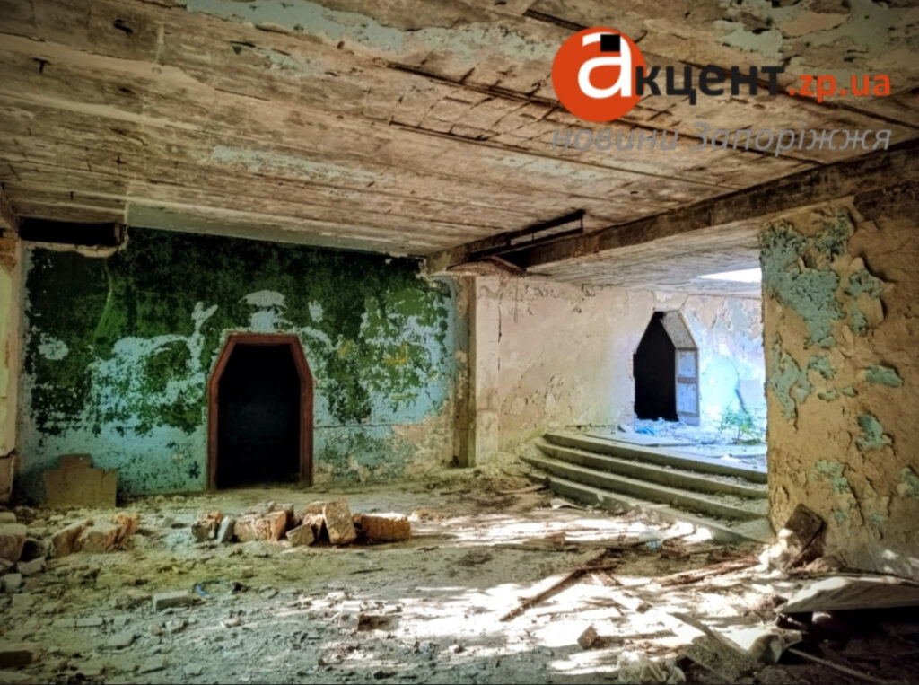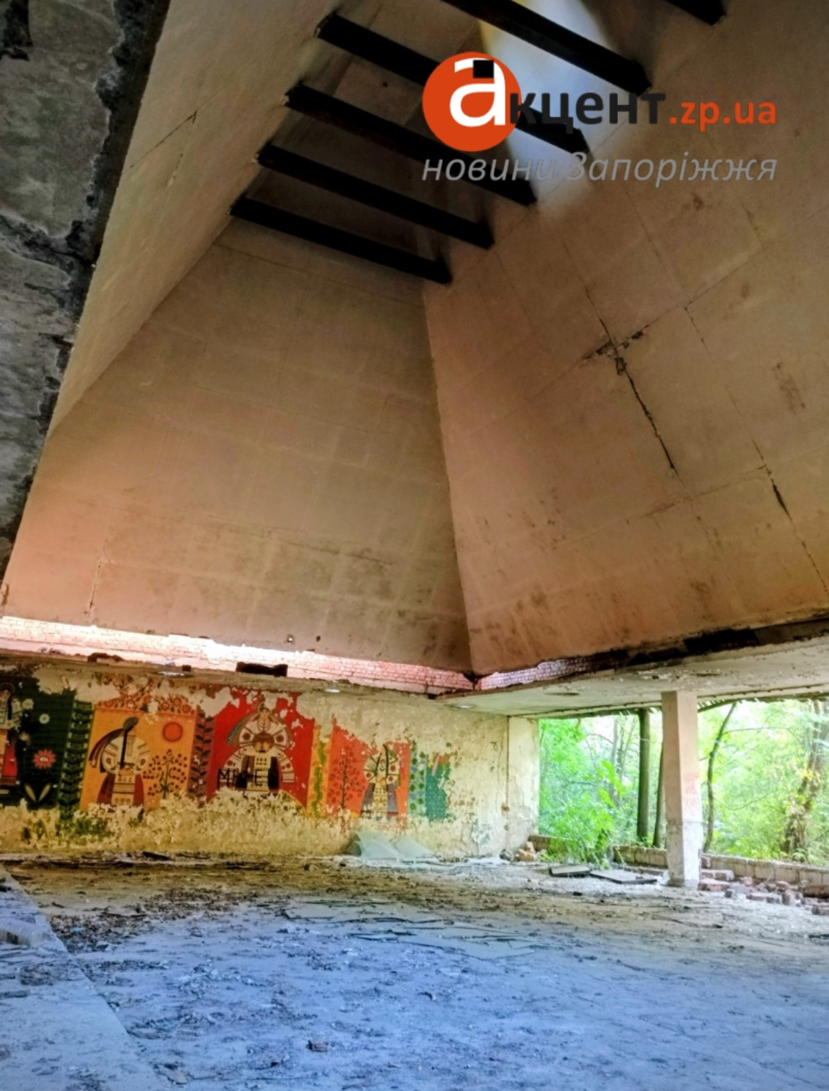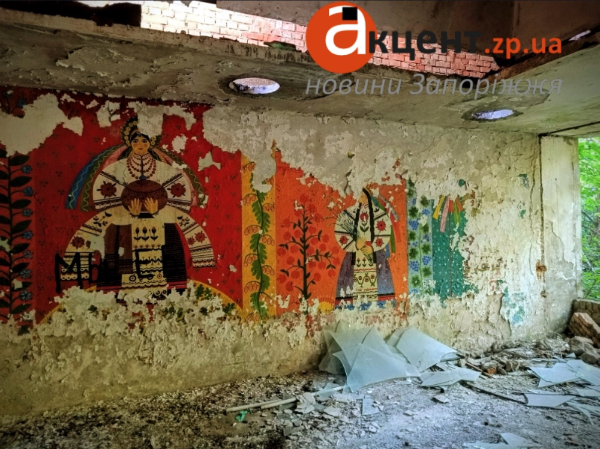 Десь на стінах проступають розмиті фрагменти розписів відомих запорізьких художників Миронових, а в господарських приміщеннях збереглася стара плитка і навіть радянські вимикачі.