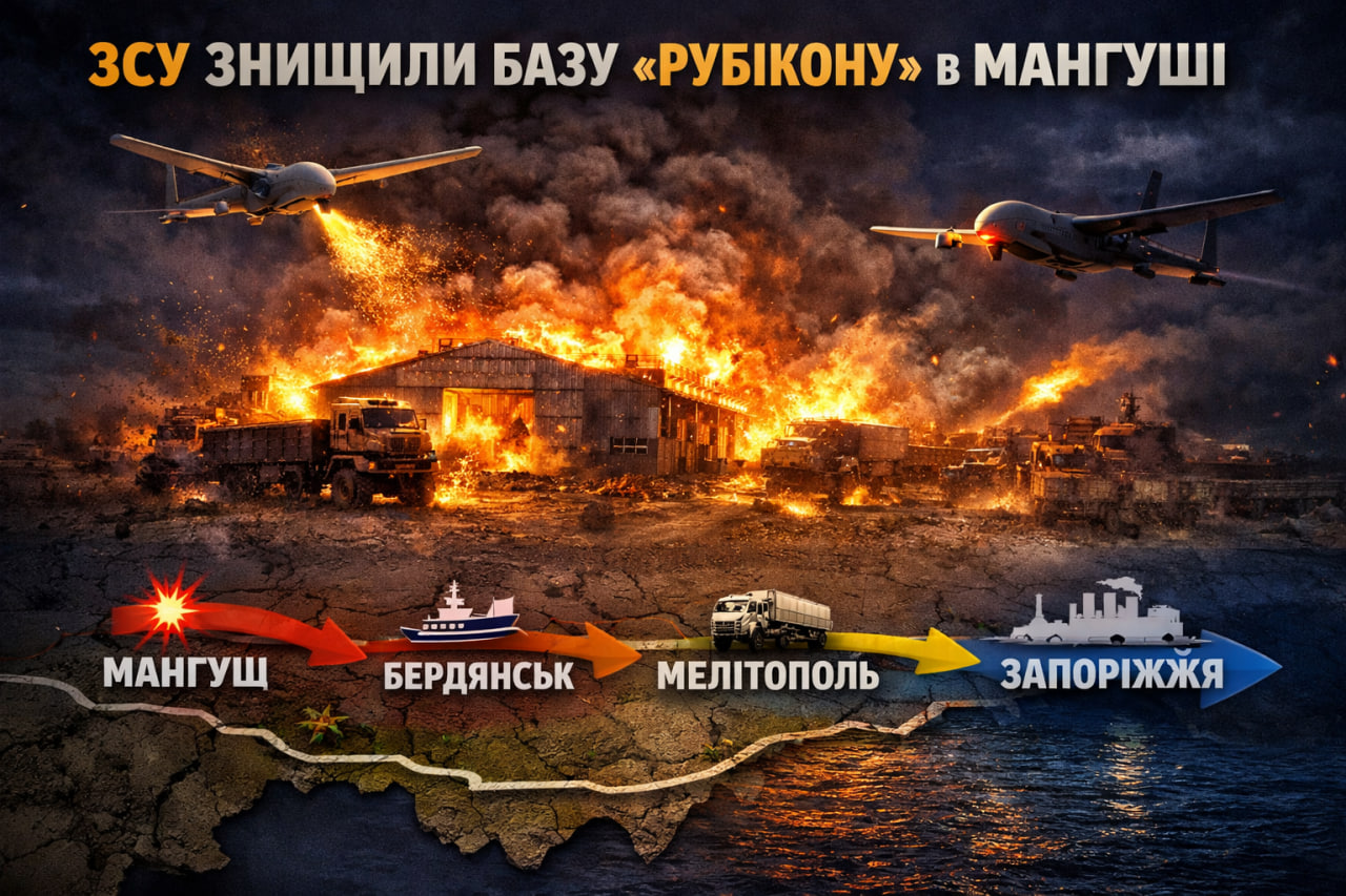 Силы специальных операций ВСУ в ночь на 17 апреля нанесли точечный удар по логистическому пункту российского подразделения «Рубикон» в Мангуше. База, которая обеспечивала поставки дронов и техники на Запорожское направление через Бердянск и Мелитополь, подверглась масштабным разрушениям — около 70% территории охватил пожар.