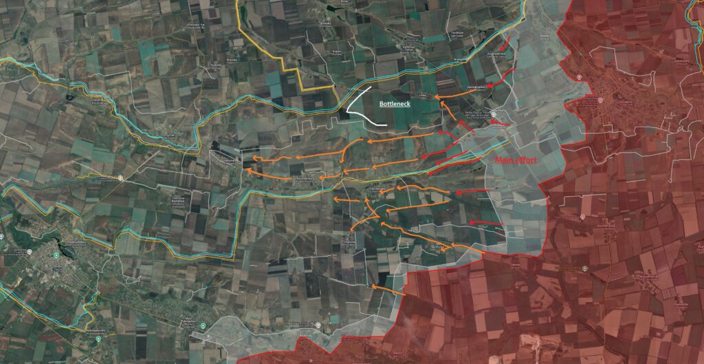 Однако продвижение дается противнику с трудом. Украинские силы продолжают удерживать район Цвиткове — Криничное — Староукраинка — Горское, что затрудняет движение российских войск в направлении Верхней Терсы.