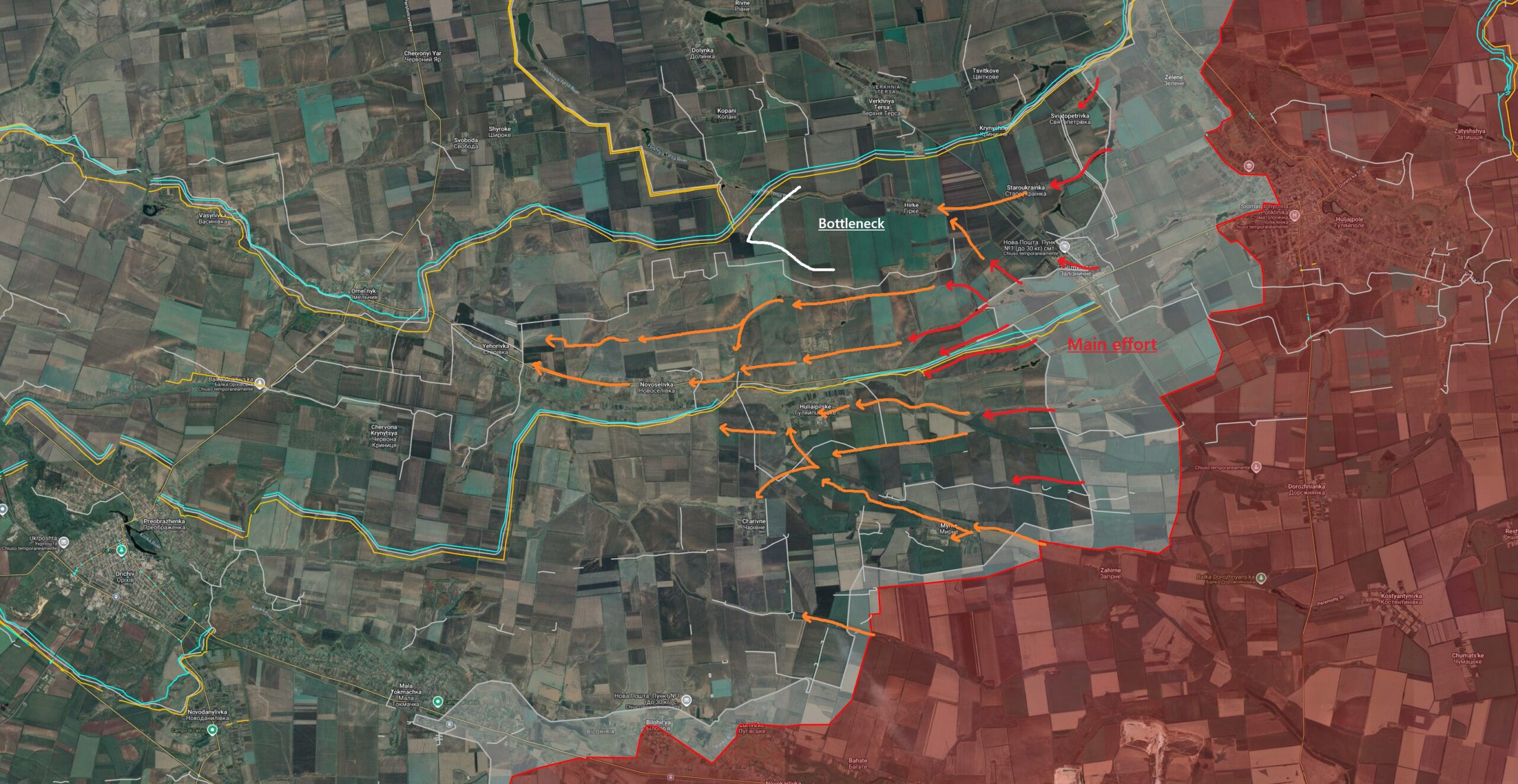 «Передовые штурмовые группы ВСУ уже имеют возможность блокировать маневры противника на этой дороге, в частности, нанося огневой удар по переправе через реку Янчур», — отмечает аналитик.