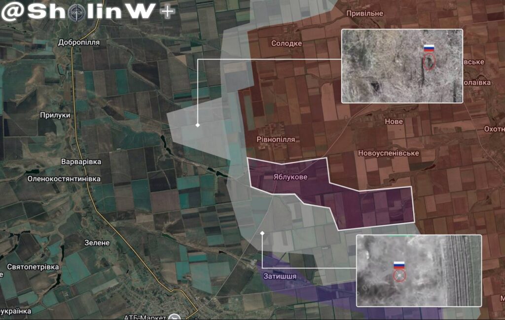 По информации осинт-аналитика Shalin, на Гуляйпольском направлении россияне малыми группами движутся западнее Ровнополья. Сейчас враг захватил Яблоково и ближайшие позиции и пытается продвигаться южнее.