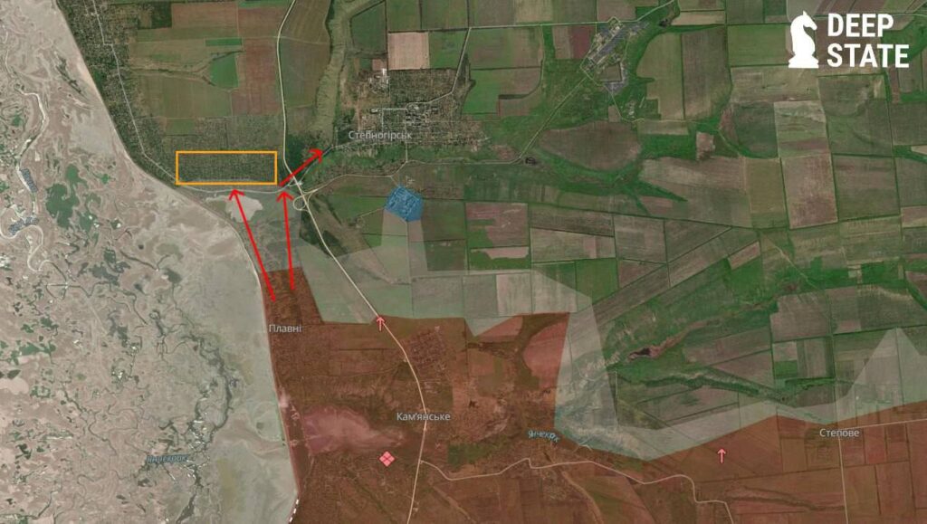 Больше всего попыток в продвижениях остаются в районе Плавней через Приморское, где осуществляется постоянная фиксация групп противника, а также поражения по ним. Оттуда они либо пытаются продвинуться глубже в Приморское, либо пробуют проникнуть в Степногорск. В частности, вчера небольшой группе кацапов удалось залезть на западные окраины поселка, но они были сразу уничтожены бойцами Сил Обороны. Одновременно с этим осуществляются периодические фиксации восточнее Степногорска, где противник как бы прощупывает участок на слабые места в обороне и ищет пробел, который можно использовать для затягивания в глубину, но пока безуспешно благодаря эффективной работе украинских пилотов, — отмечают эксперты DeepState.