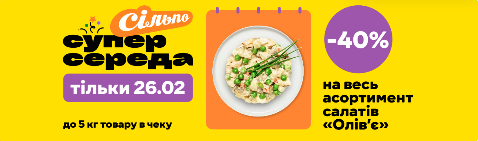 Акционное предложение действует в рамках акции «Суперсреда» только 26 февраля 2025 года в супермаркетах «Сільпо».