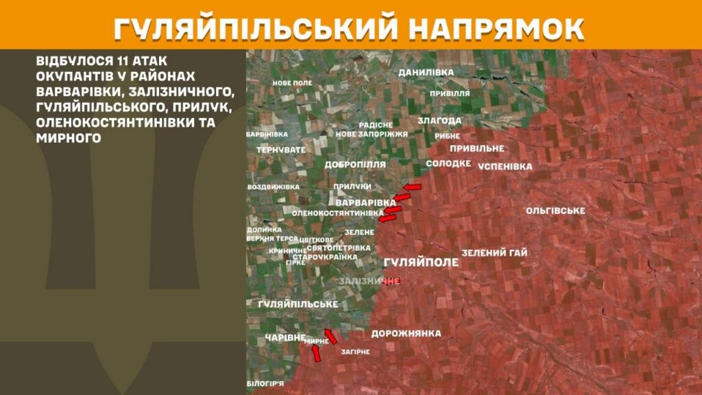 На Гуляйпольском направлении произошло 11 атак оккупантов в районах Варваровки, Железнодорожного, Гуляйпольского, Прилук, Еленокстантиновки и Мирного.